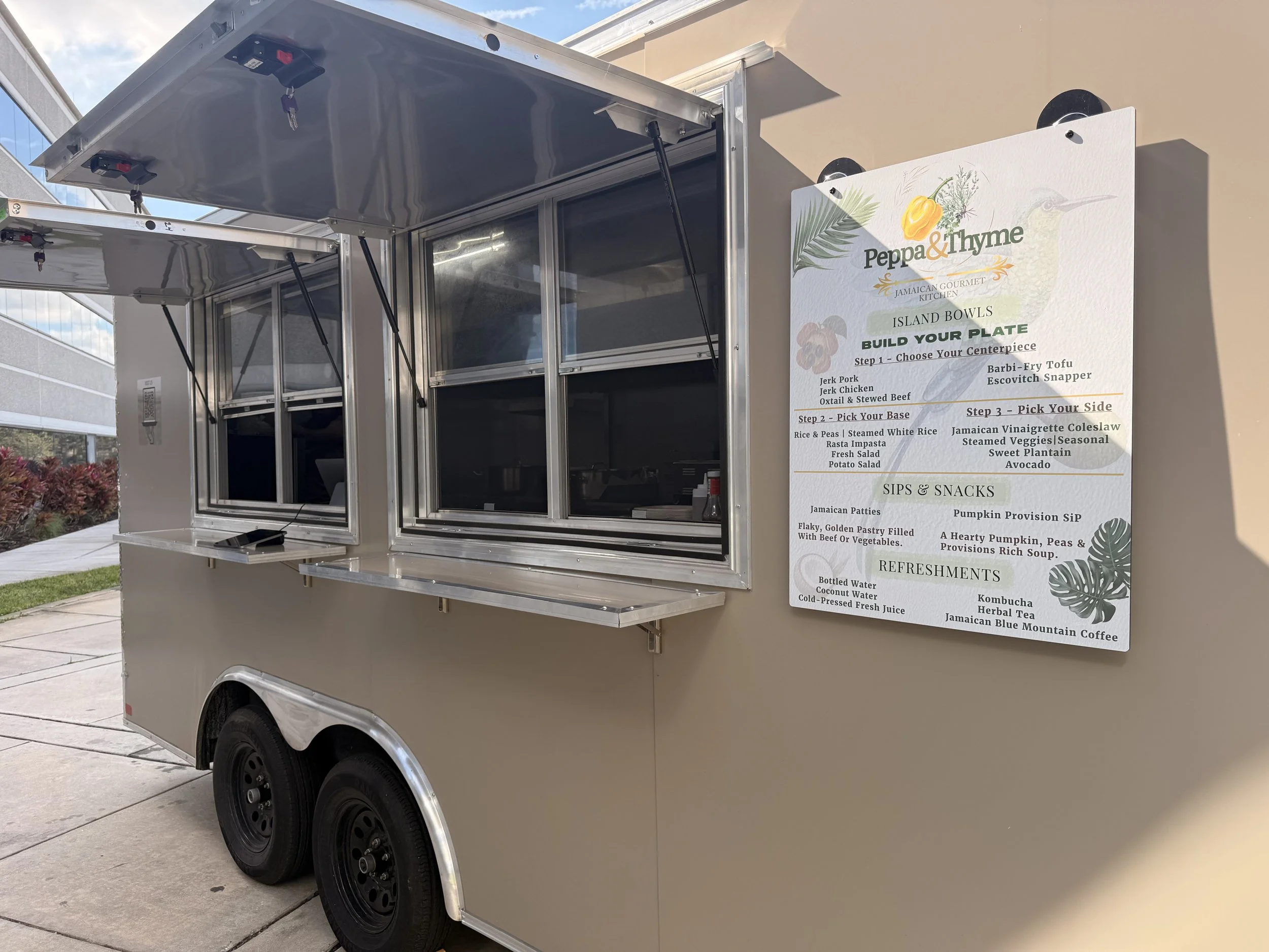 Peppa&Thyme is a Tampa-based food trailer and full-service catering company bringing big flavor wherever we go. Our menu is inspired by Caribbean and comfort-food classics, cooked fresh and served fast with heart. Whether you’re stopping by for lunch, meeting friends after work, or booking us for a private or corporate event, we’re here to deliver memorable food and good vibes.